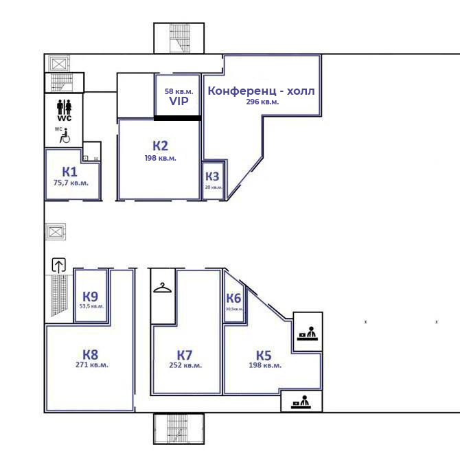 Вмещает до 150 человек, включая пресс-вол, зону для кофе-брейка.